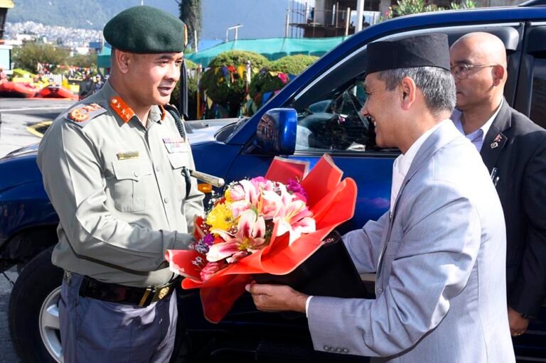 काठमाडौँ । गृह एवं कानून न्याय तथा संसदीय मामिला मन्त्री ओमप्रकाश अर्यालले असोज ५ गते आईतबार सशस्त्र प्रहरी बल नेपाल प्रधान कार्यालयको निरीक्षण भ्रमण गरेका छन् । सोही अवसरमा भाद्र २३ र २४ गते भएको जेन्जी आन्दोलनको क्रममा दिवंगत सहिदहरुप्रति उच्च सम्मान व्यक्त गर्दै घाईते नागरिक तथा सशस्त्र प्रहरी कर्मचारीहरुको शिघ्र स्वास्थ्य लाभको कामना समेत व्यक्त गरेका थिए ।