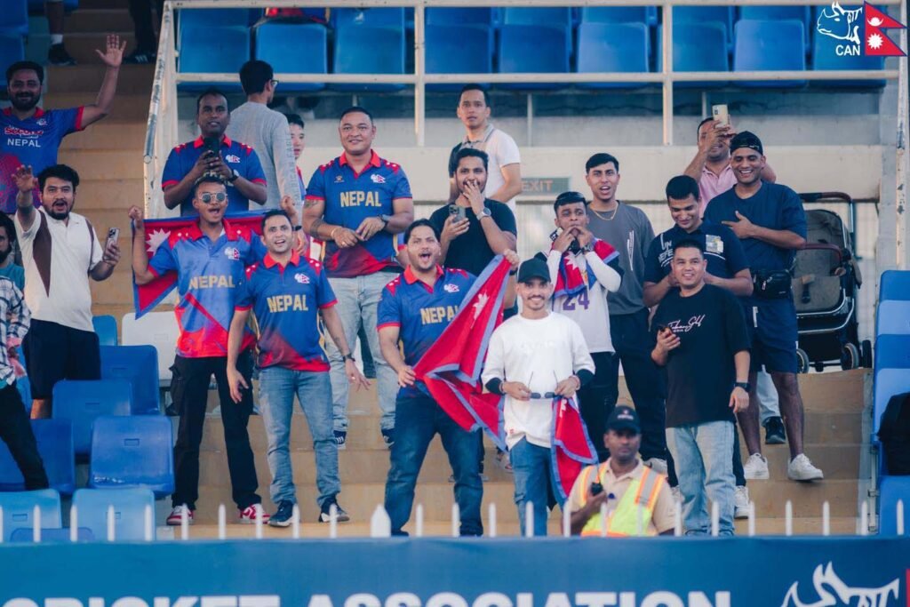 काठमाडौँ । नेपाल र वेस्ट इन्डिजबीचको खेल हेर्न युएईको शारजाह क्रिकेट स्टेडियममा नेपाली क्रिकेट समर्थक उपस्थित भएका छन् ।