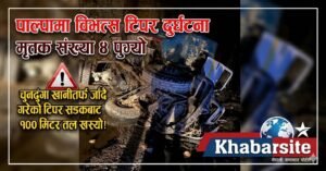 पाल्पा, ८ चैत । पाल्पाको माथागढी गाउँपालिका–७ रहबासमा गएराति भएको भीषण टिपर दुर्घटनामा ज्यान गुमाउनेको संख्या चार पुगेको छ। सुरुमा तीन जनाको घटनास्थलमै मृत्यु भएकोमा, गम्भीर घाइते भई अस्पताल भर्ना भएका थप एक जनाको उपचारका क्रममा मृत्यु भएपछि मृतकको संख्या थपिएको हो। जिल्ला प्रहरी कार्यालय पाल्पाका सूचना अधिकारी डिएसपी होमप्रकाश चौधरीका अनुसार तानसेन नगरपालिका–१० पटुवाका ३३ वर्षीय राजन चिदीको उपचारका क्रममा मृत्यु भएको हो।